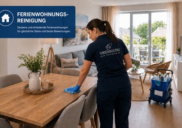 Wir übernehmen die komplette Reinigung Ihrer Ferienwohnung – schnell und zuverlässig zwischen Gästewechseln. Auf Wunsch inklusive Bettwäsche-Service, Kontrolle und Schlüsselübergabe. Ideal für private Vermieter und Hausverwaltungen.