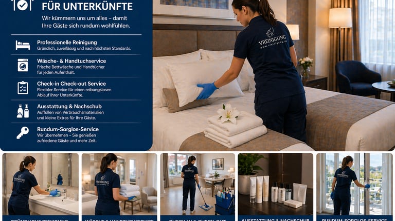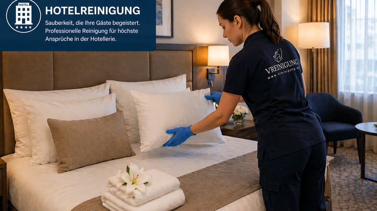 Professionelle Zimmer- und Hotelreinigung für höchste Ansprüche. Wir arbeiten effizient, diskret und flexibel – auch bei hoher Auslastung. Perfekt für Hotels, Pensionen und Gästehäuser.