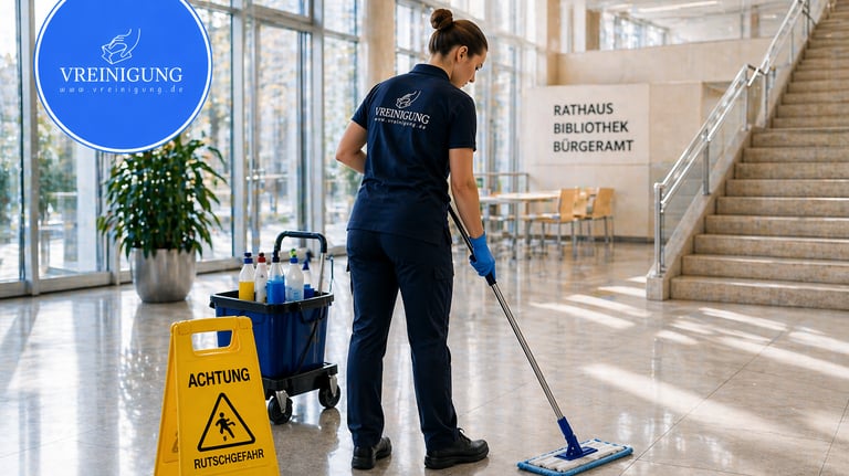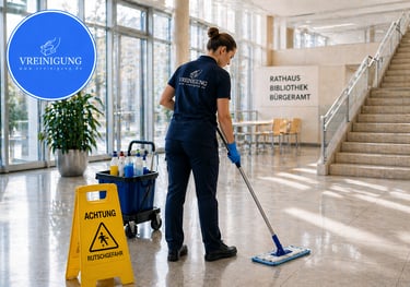 Professionelle Reinigung von öffentlichen Einrichtungen wie Schulen, Rathäusern und Verwaltungsgebäuden.